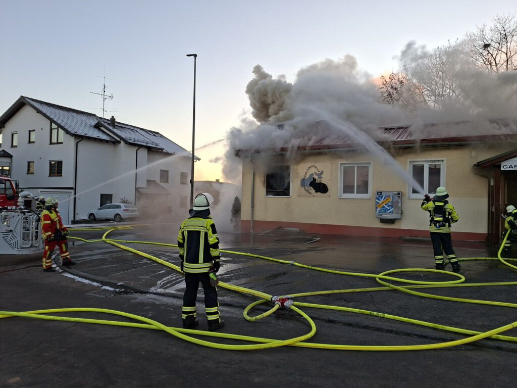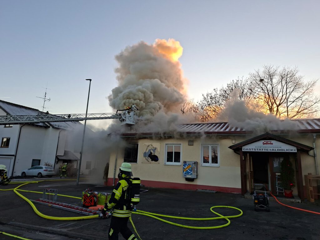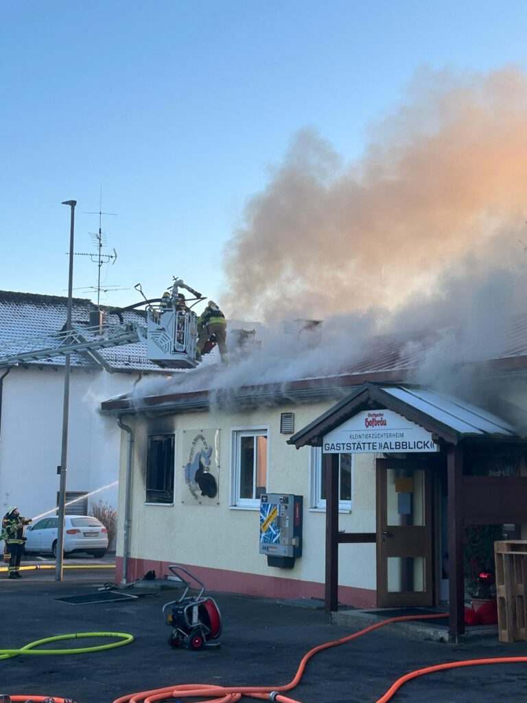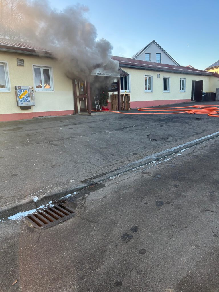 Am Sonntagnachmittag wurde die Feuerwehr Altenriet zu einem Brand in eine Gaststätte alarmiert. Beim Eintreffen der ersten Einsatzkräfte aus Altenriet konnte eine Verrauchung und Flammenschein aus dem Bereich der Küche des Gastronomiebetriebes festgestellt werden. Nachdem klar war, dass alle Personen das Gebäude verlassen hatten, wurde ein umfangreicher Löschangriff in den Bereich der Küche eingeleitet. Einsatzkräfte aus Altenriet, Schlaitdorf, Neckartenzlingen und Filderstadt gelang ein erstes Eindämmen der Flammen. Einsatzleiter Sven Zeller, Kommandant der Feuerwehr Altenriet, ließ bereits in der Anfangsphase Kräfte der Feuerwehr Walddorfhäslach (LK Reutlingen) nachalarmieren.